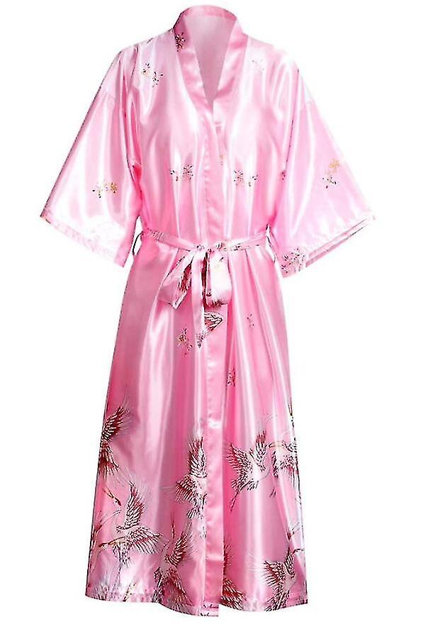Women Nightgown Sleepwear Print Crane Kimono Long Bathrobe