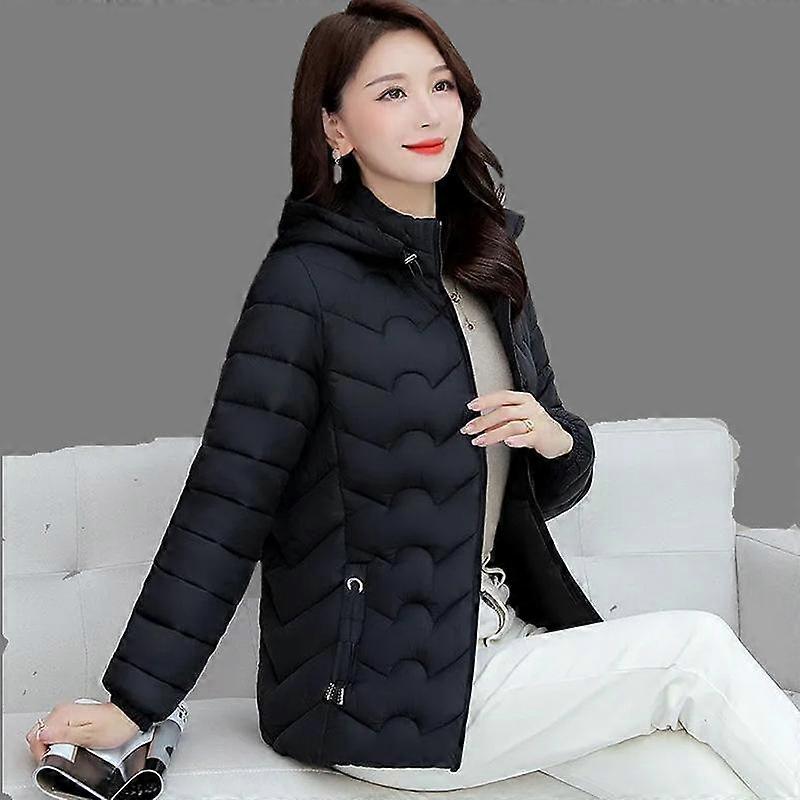 Middle Aged Women Winter Warm Lightweight Cotton Coat Plus Size Short Hooded Jacket Outwear