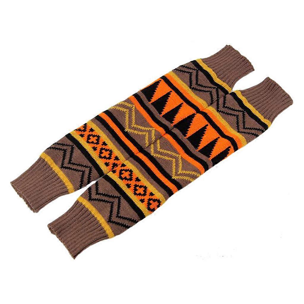Women Bohemian Ribbed Knit Leg Warmers Ethnic Geometric Striped Pattern Warm Boot Cuffs Gaiters Crochet Thigh High Long Socks Stockings Khaki
