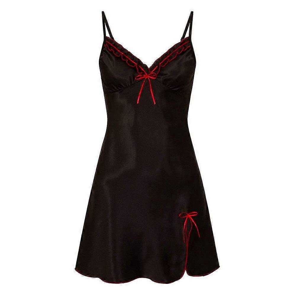 Women Babydoll Nightgown Nightdress Chemises Lace Sleepwear V-neck Silky Slip Dress