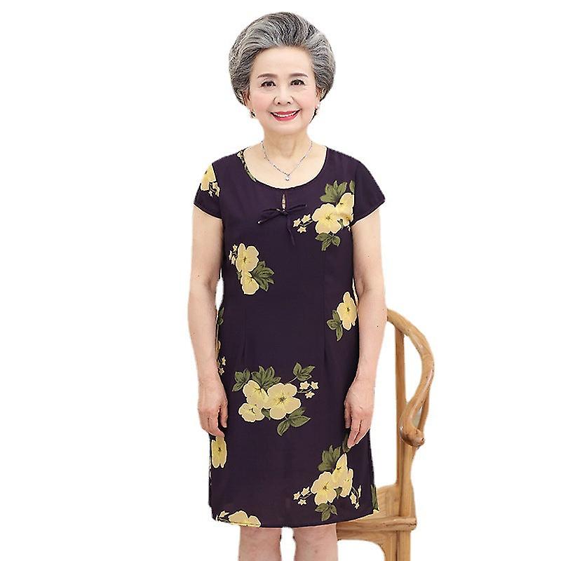 Women Girls Dress Trendy Mulberry Silk Digital Printing Midi Round Neck Short Sleeve Fashion