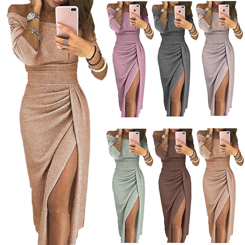 Women Girls Dress Comfortable Women's Sheath Slit Off-neck Shiny Dinner