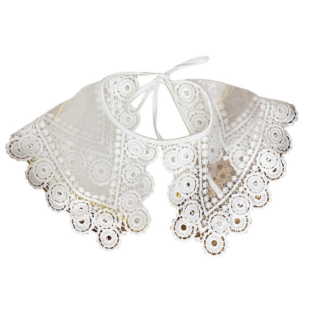 Women Solid Color Decorative Fake Collar Shawl Hollow Out Floral Lace Trim Lapel Half Shirt Blouse Necklace Detachable Shoulder Wrap Mini Poncho 1