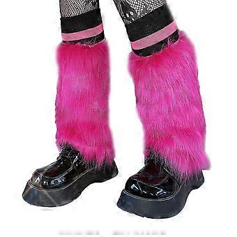 Women Vintage Rose Red Furry Leg Warmers Winter Warm Harajuku Faux Fur Boots Shoes Cuffs Covers Long Socks Streetwear rose red 40