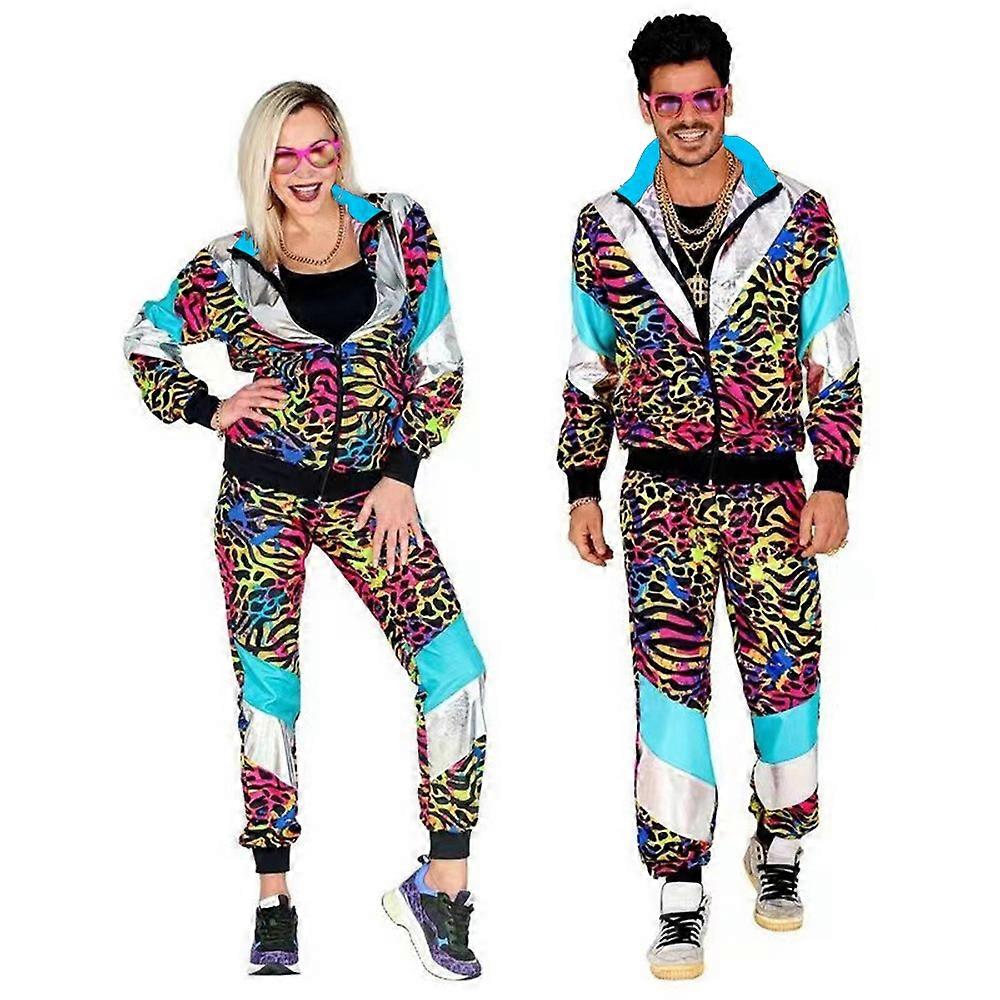 Women Men Shell Suit Costume Sports Tracksuit Set Halloween Retro Neon 80s 90s Adult Fancy Dress Outfits