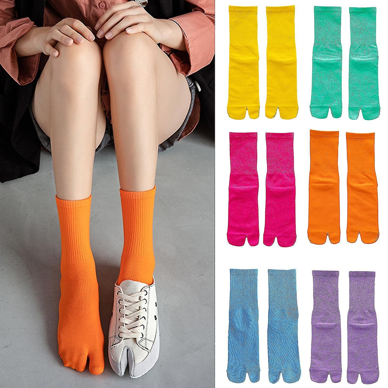Women Men Ribbed Cotton Split Toe Kimono Tabi Crew Socks Harajuku Neon Solid Color Skateboard 2 Finger Flip Flop Sandal Casual Mid Tube Hosiery