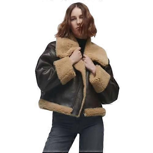Women Faux Fur Motorcycle Jacket Fleece Long Sleeve Winter Outerwear Coat