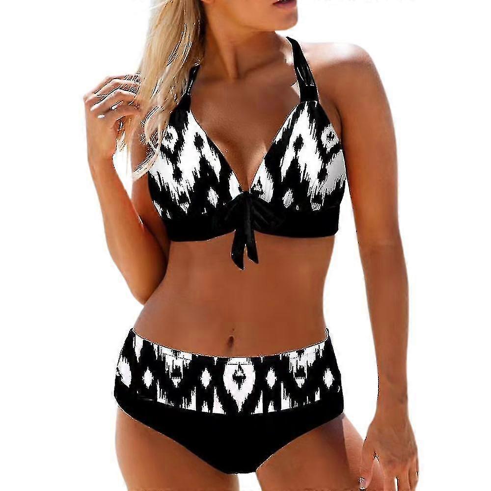 Women Print Padded Bikini Set Sexy Halterneck Bra Top Briefs Swimsuit Summer Holiday Beach Swimwear Bathing Suit