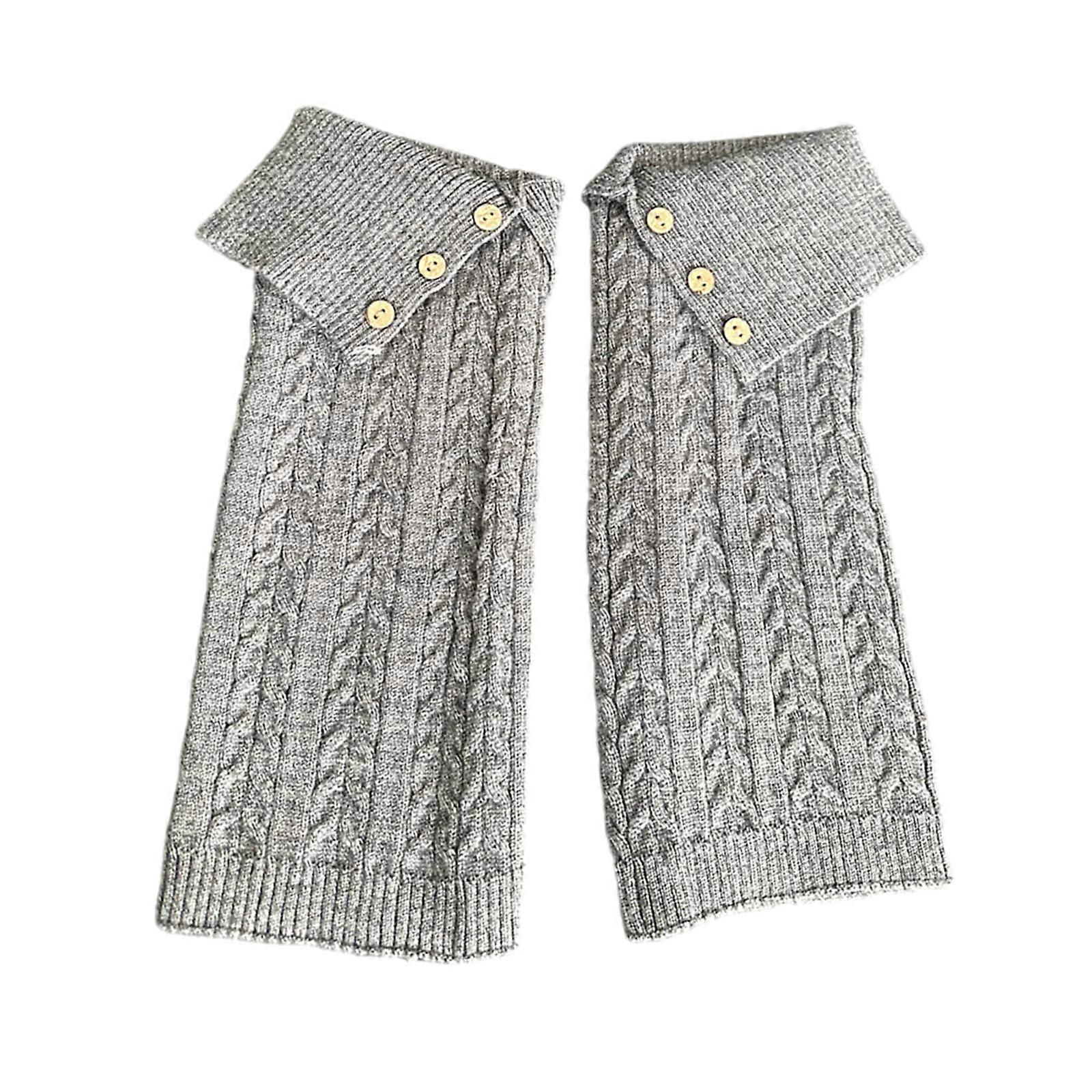 Women Lapel Button Leg Warmers Knitted Long Leg Socks Warm Students Girls Boot Socks Winter Warm Leg Covers Streetwear Gray