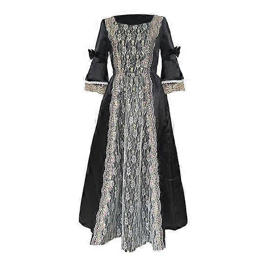 Women Performance Dress Stage Show Retro Royal Style Lace Bow Decor Bell Sleeve Patchwork A-line Hallowen Party Carnival Evening Dress Ball Gown