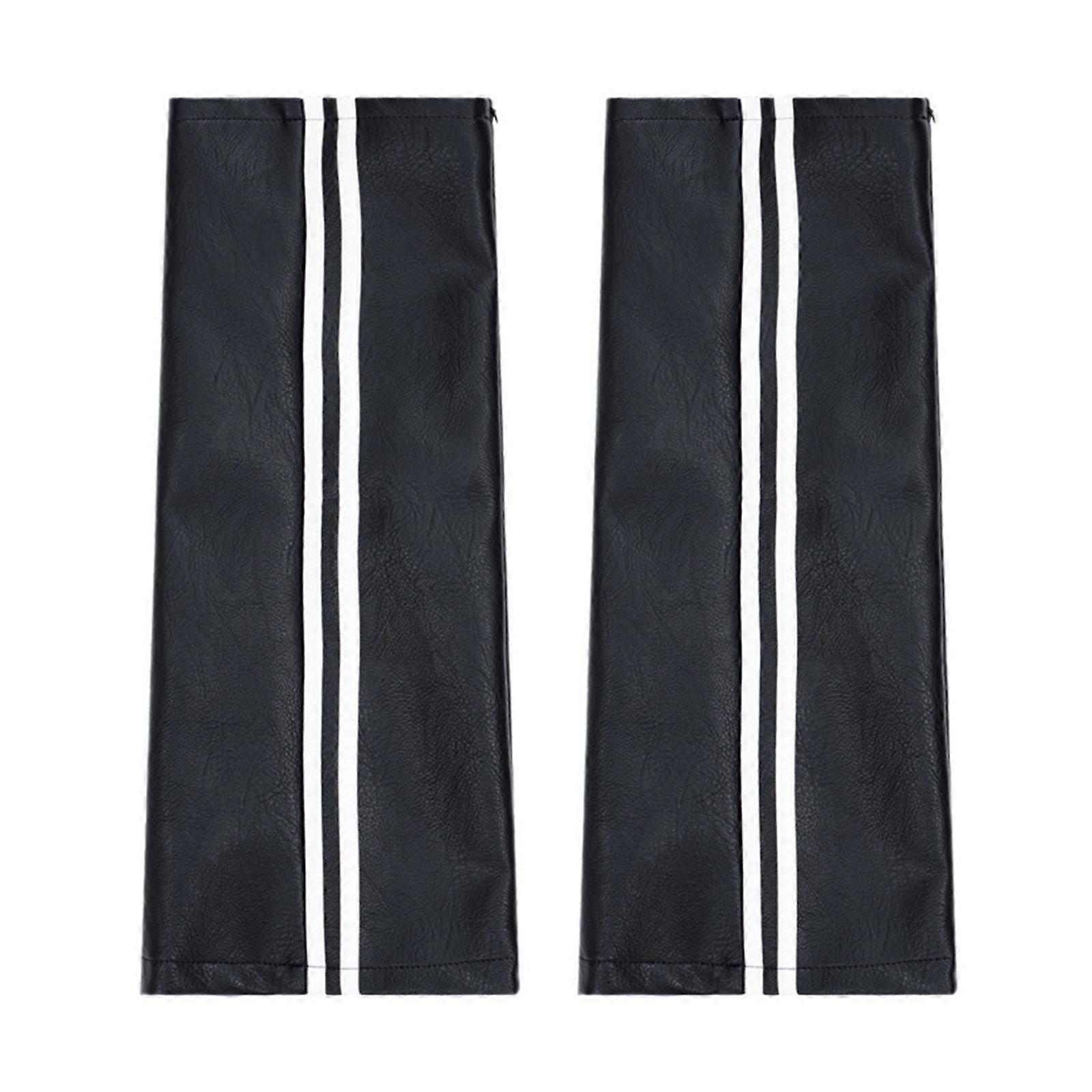Women Harajuku Punk Faux Leather Striped Leg Warmers Side Zippers Flared Leg Gaiters Knee Long Socks Black Boot Covers
