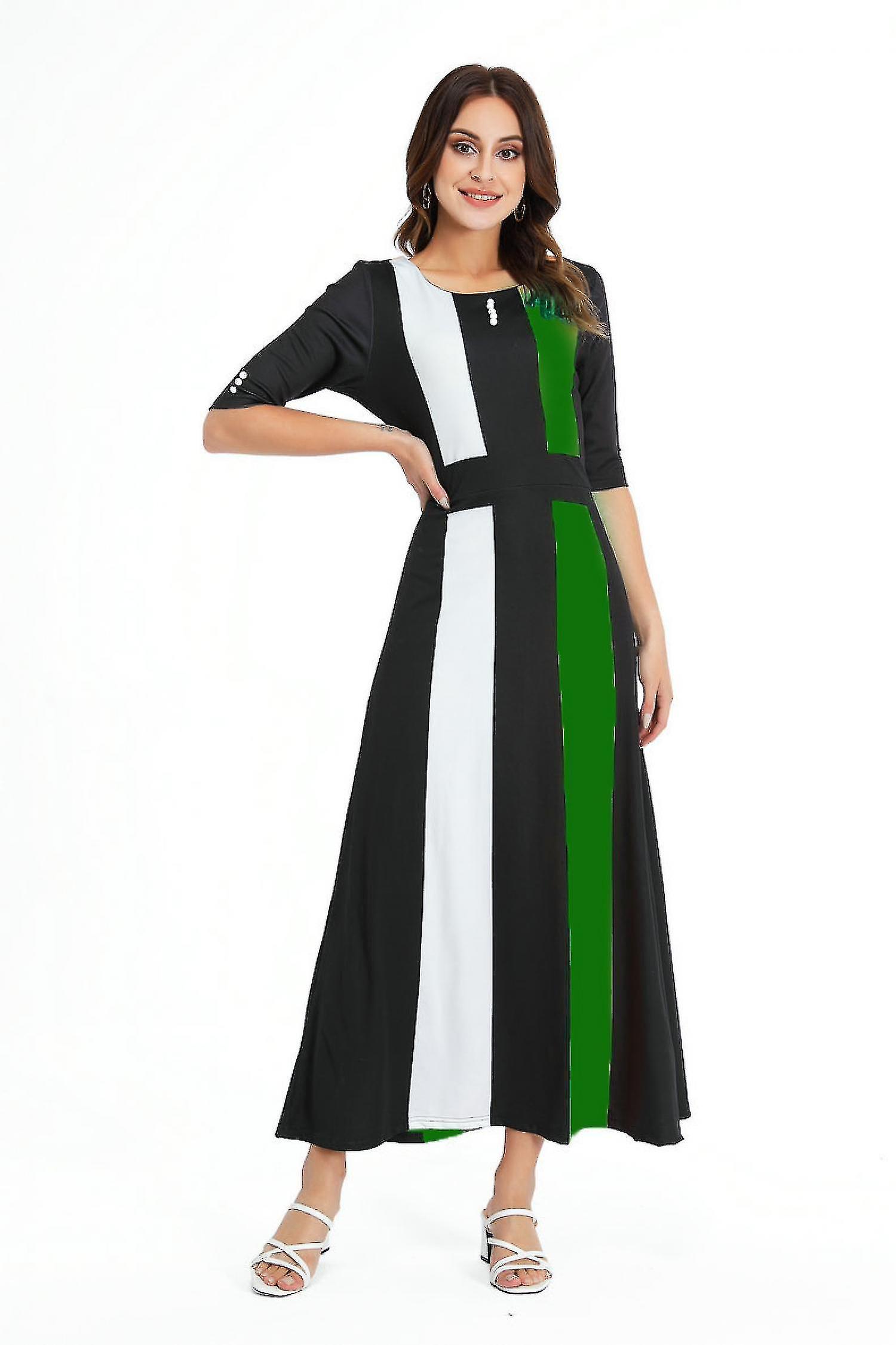Women Vintage Contrast Color Patchwork Office Pencil Work Business Dress, Green, 2xl