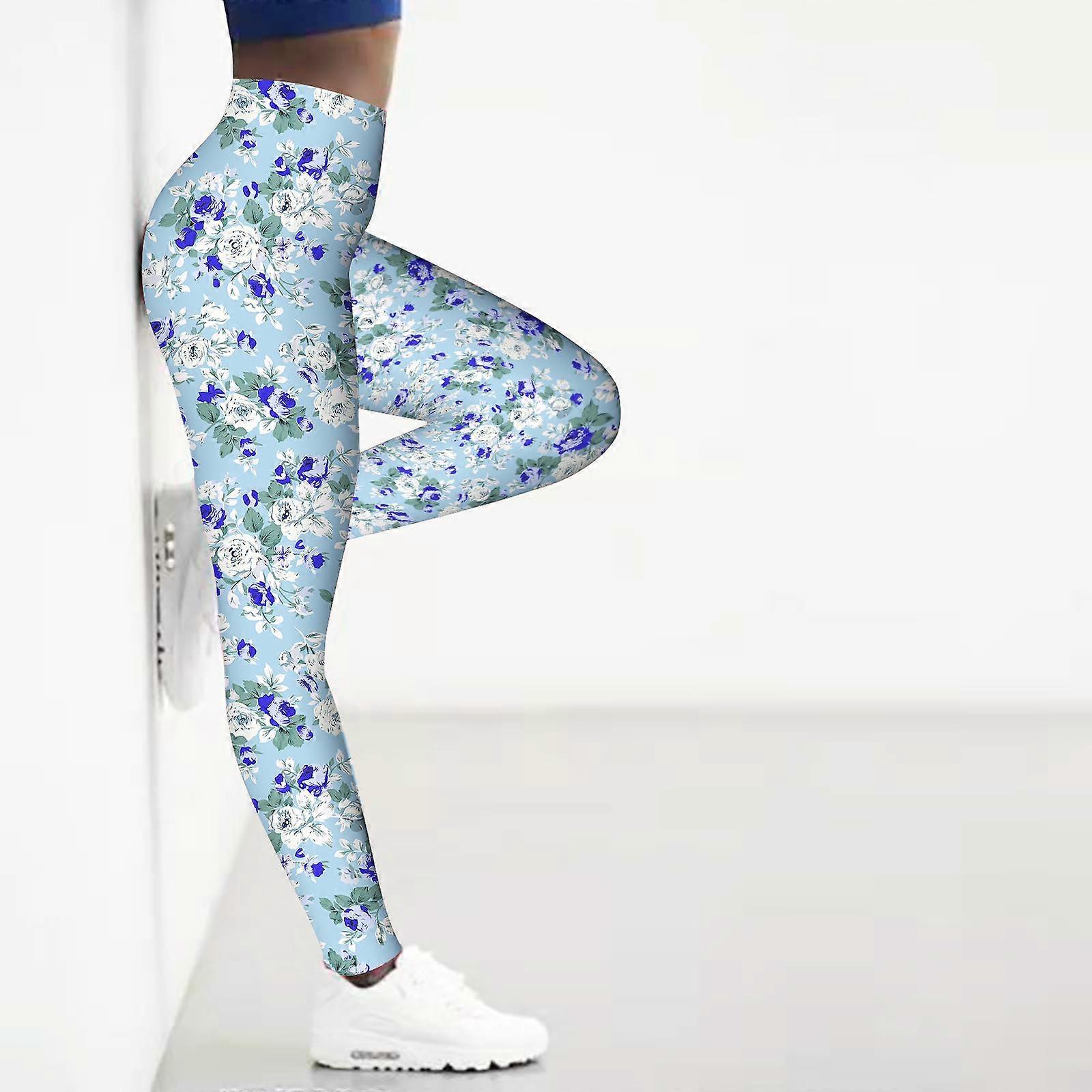 Womens Pink Roses Prints Stretch Yoga Leggings Fitness Running Gym Sports Active Pants