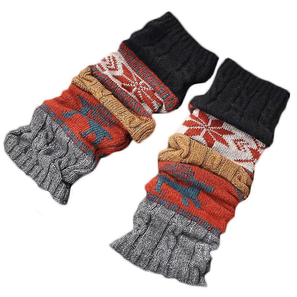 Women Christmas Winter Leg Warmers Snowflake Elk Print Cable Knit Long Socks