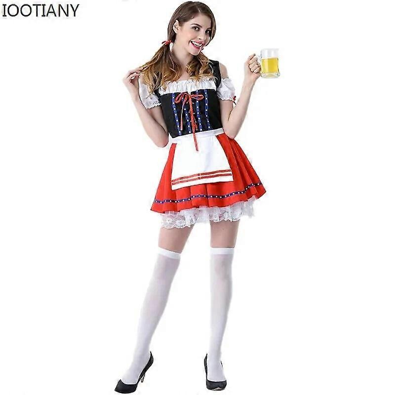New Women Germany Beer Maid Tavern Wench Waitress Outfit Carnival Oktoberfest Dirndl Costume Dress Cosplay Halloween Fancy Party