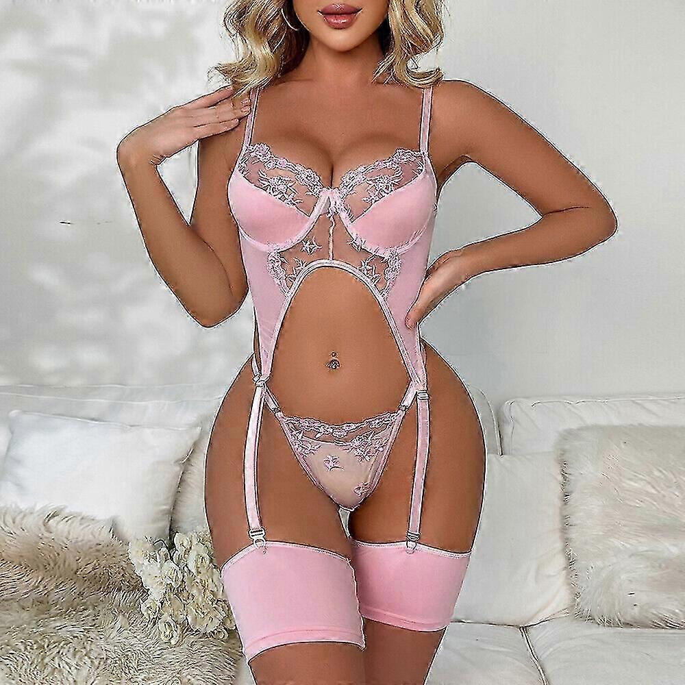 Women Pink Thongs Babydoll Underwear Nightwear Sexy Lingerie Bra Set Sleepwear