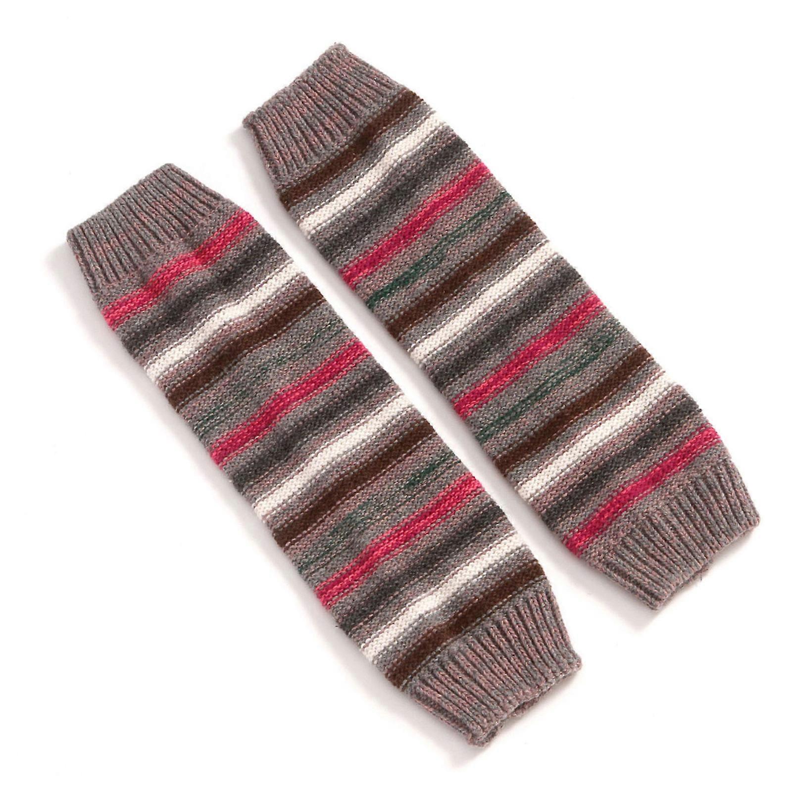 Women Winter Faux Wool Knit Leg Warmers Bohemian Colorful Striped Jacquard Crochet Boot Cover Sleeves Snow Skiing Knee High Socks grey