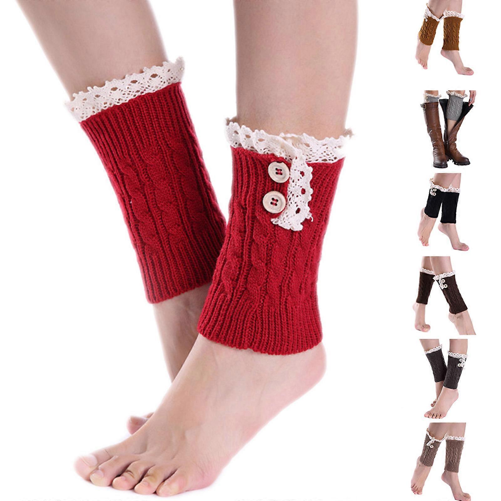 Women Winter Cable Knit Boot Cuffs Toppers Ruffled Lace Trim Double Button Twist Chunky Crochet Short Socks Thermal Leg Warmers light grey