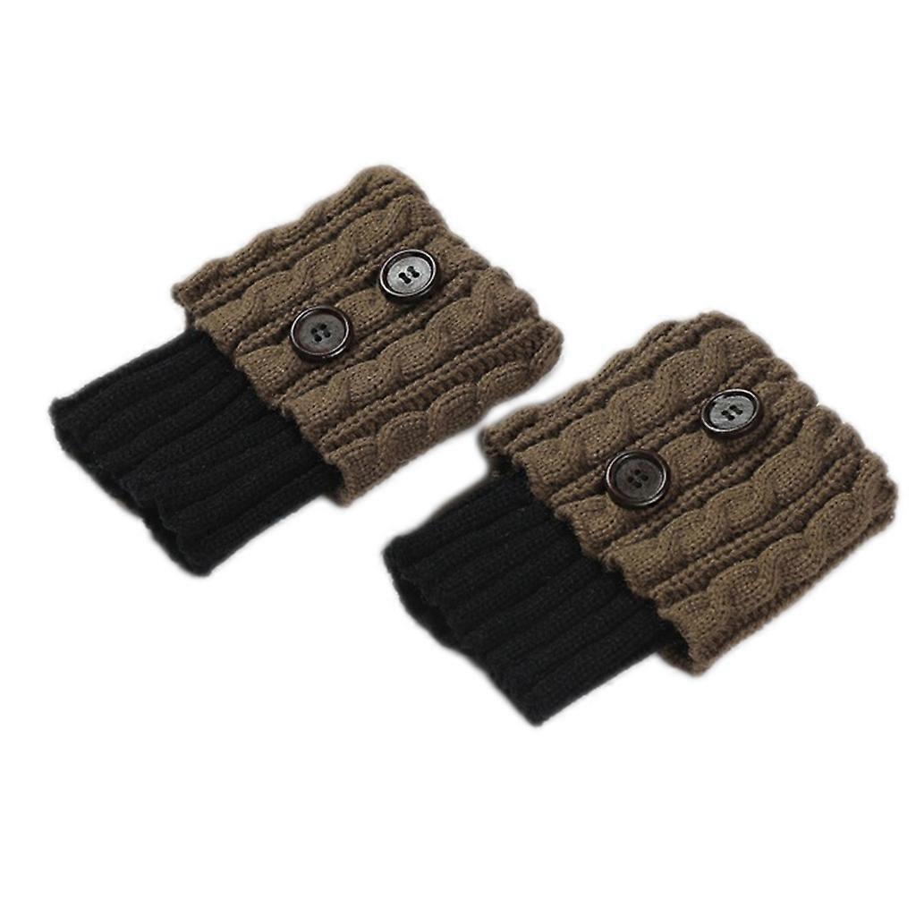 Women Winter Cable Knitted Buttons Boot Cuffs Toppers Solid Color Crochet Short Leg Warmers Rolled Down Stretchy Thermal Warm Socks Khaki