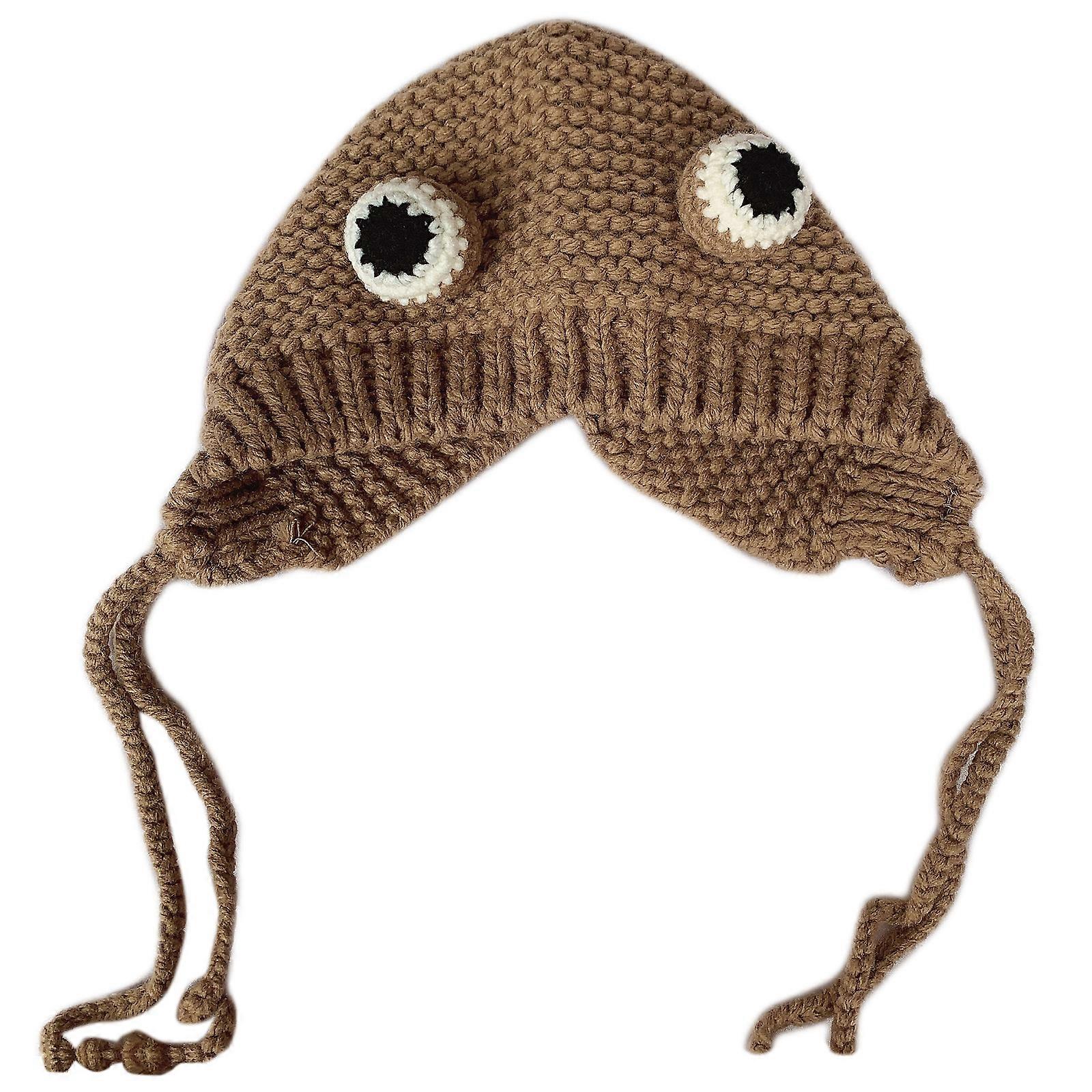 Women Winter Chunky Cable Knitted Earflap Hat Cute Cartoon Animal for Frog Eyes Solid Color Outdoor Windproof Skullies Beanie Cap Ear Warmer Khaki