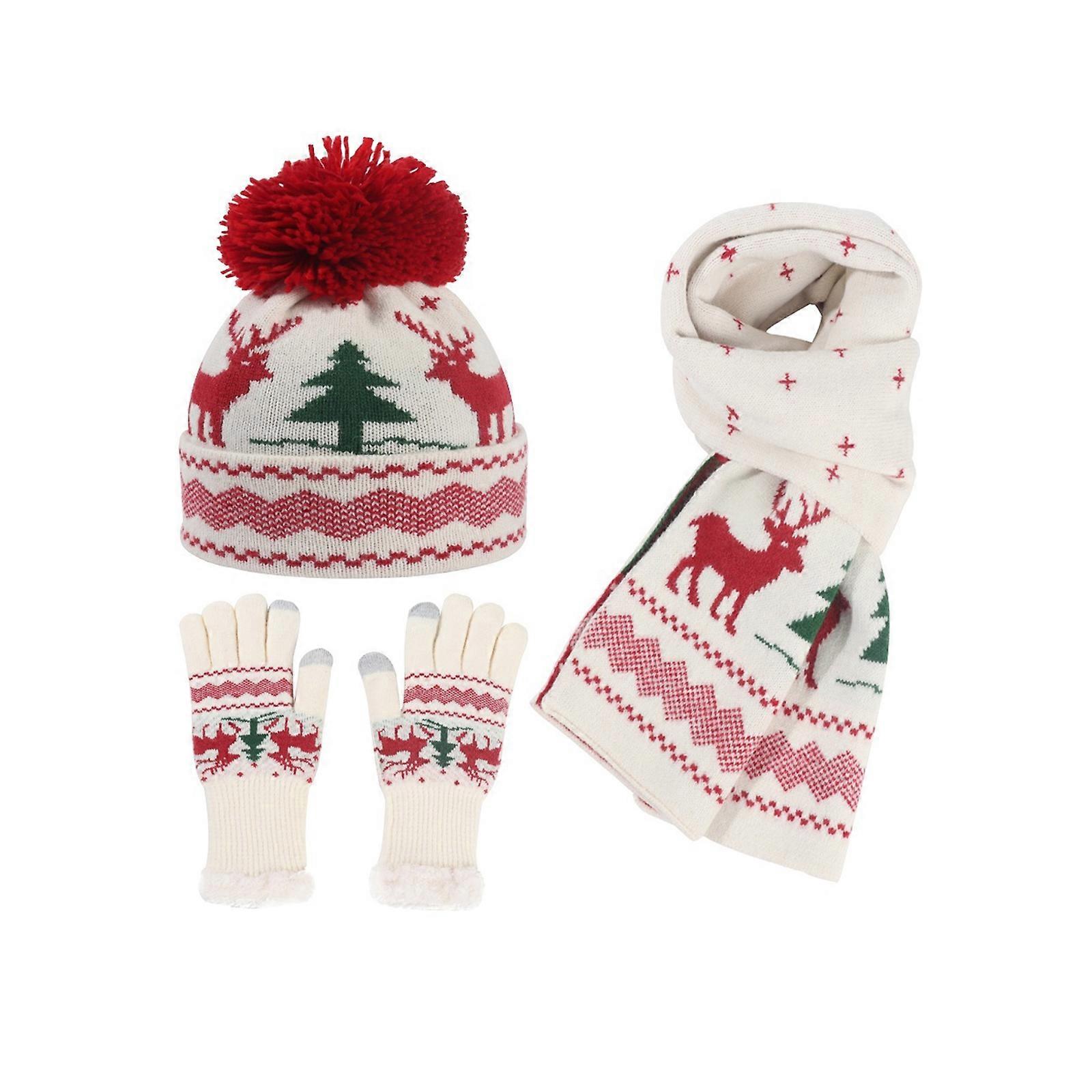 Womens Winter Knit Warm Hat Christmas Hat Scarf Gloves Set casual Christmas warm beanie
