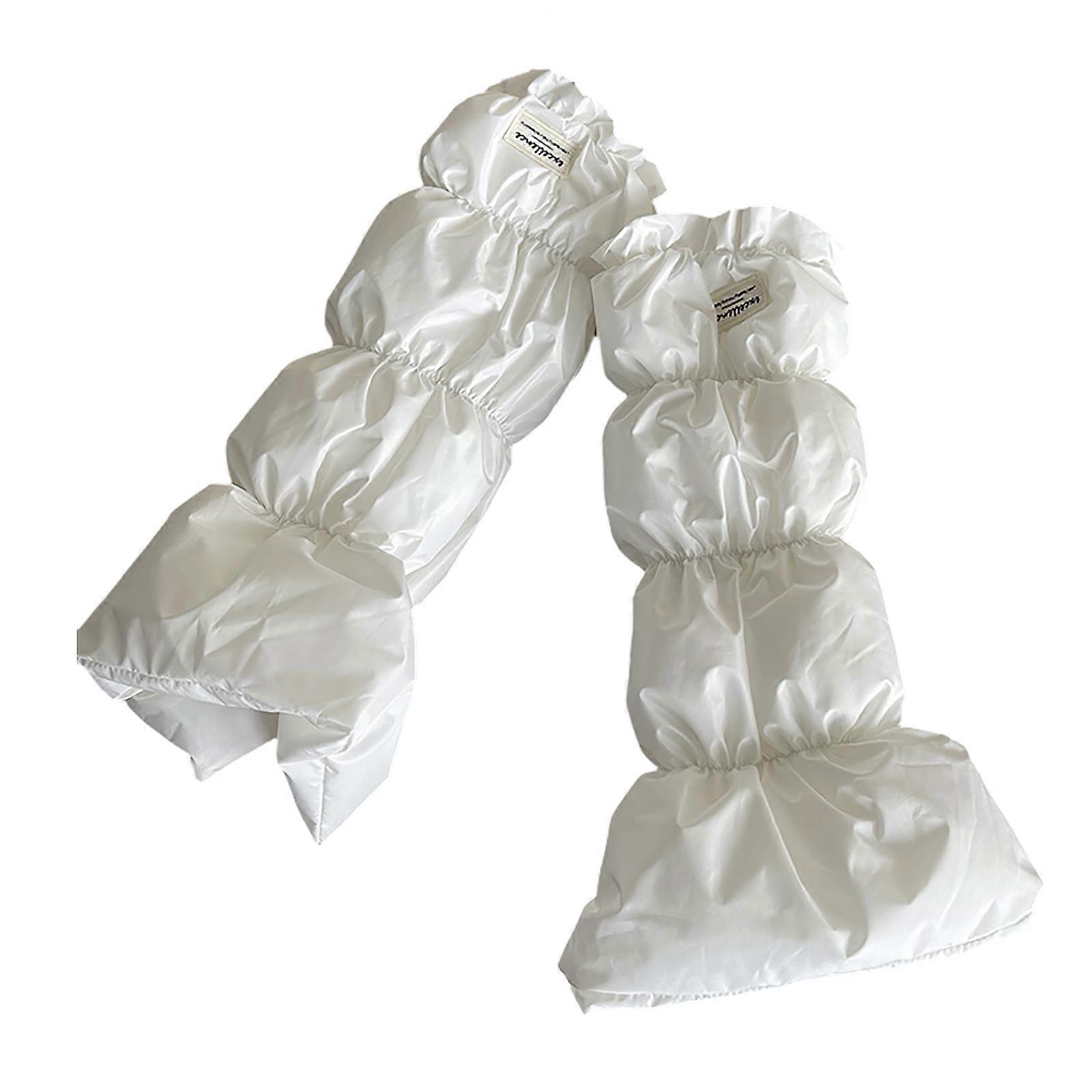 Women Winter Padded Puffer Leg Warmers for Outdoor and Sports Harajuku Letter Label Flared Foot Covers Cuffs Boot Socks White long style