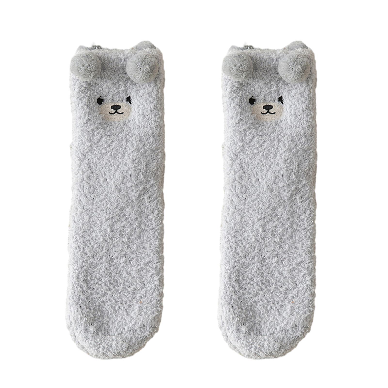 Women Winter Coral Fleece Fuzzy Socks Embroidery Bear Pattern Thickened Plush Floor Socks Mid-tube Home Sleeping Socks