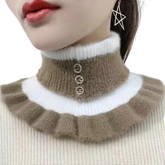 Women Winter Scarf Fake High Collar Color Matching Ruffle Rhinestone Decor Knitted Elastic Warm Windproof Neck Protection Decorative Neck Warmer