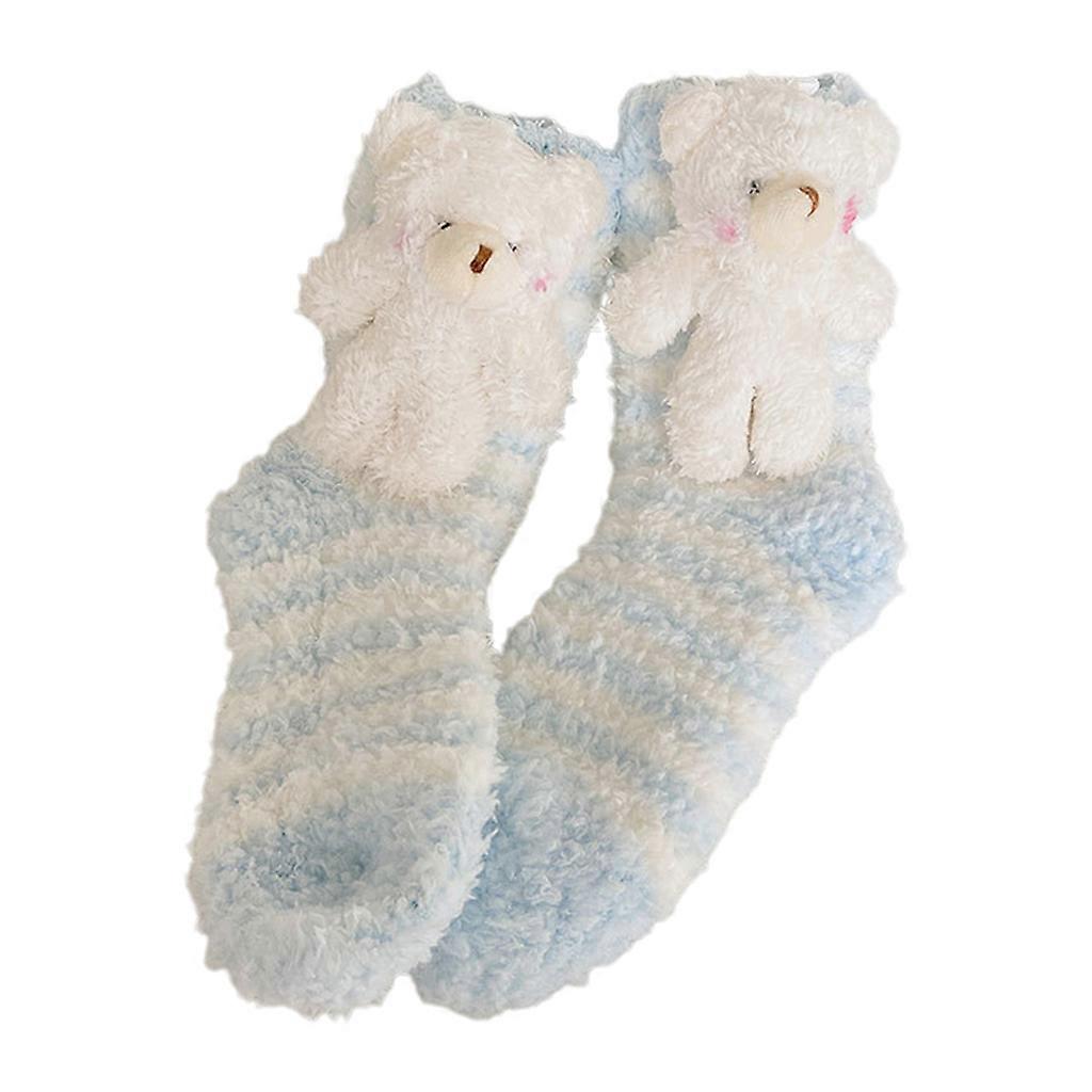 Women Winter Coral Velvet Striped Slipper Crew Socks Cute 3D Cartoon Stuffed Bear for Doll Thermal Home Sleeping Hosiery