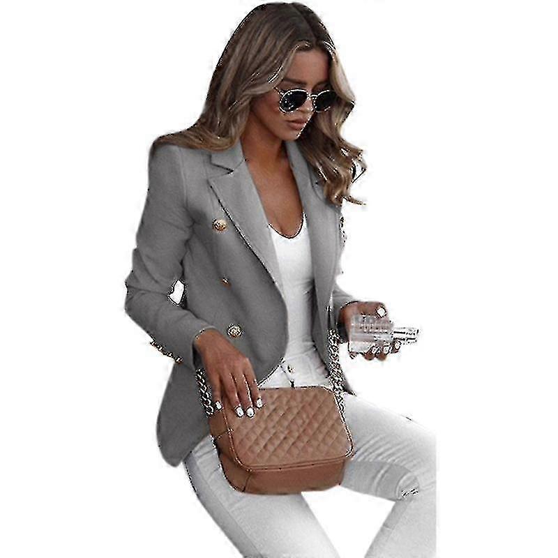 Women Double Breasted Blazer Suit Military Jacket Lapel Slim Fit Outwear Coat