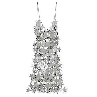Womens Hollow out Bikinis Chain Big Star Sequins Tassel Body Chain Dress Summer Harness Skirt Chain Jewelry Accessories White K Dress