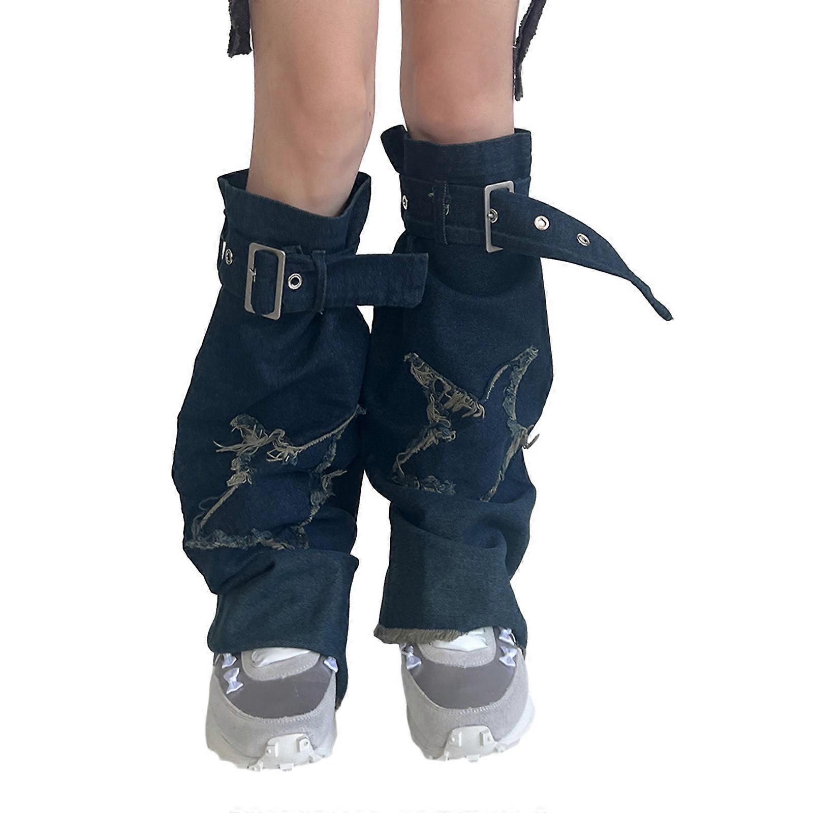 Women Cute Denims Leg Warmers Girls 80s Harajuku Punk Knee High Leg Socks Preppy Stockings Gothic Clothes Y2K Streetwear Blue