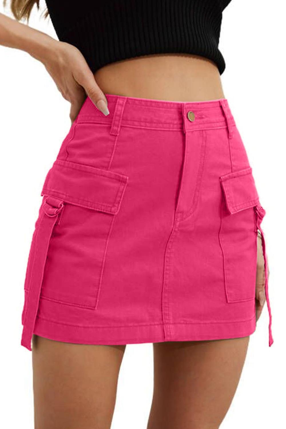 Women Low Waist Cargo Mini Skirt Y2K Casual Button Bodycon with Pocket Comfort Denim Skirts