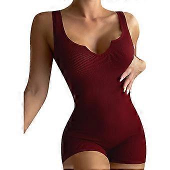 נשים יוגה רומפר כושר אוברול חדר כושר ספורט חלק אחד גב חשוף בגד גוף מכנסיים קצרים