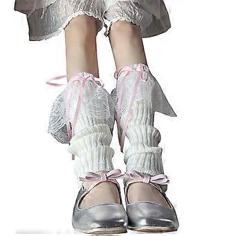 Womens Daily Subculture-Legwarmers Solid Color Lacy Edge Bows Cute Sweet Style Sock Insgram Style Jokers Wearing Legwear White