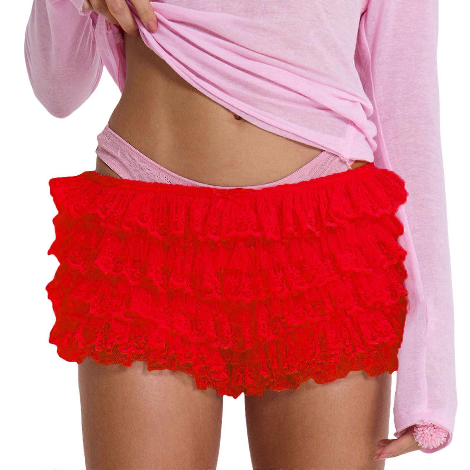 Women Girl Cute Bowknot Layered Ruffled Lace Shorts Japanese Aesthetic Vintage Bloomers Underpants Low Rise Pumpkin Pant Red XL
