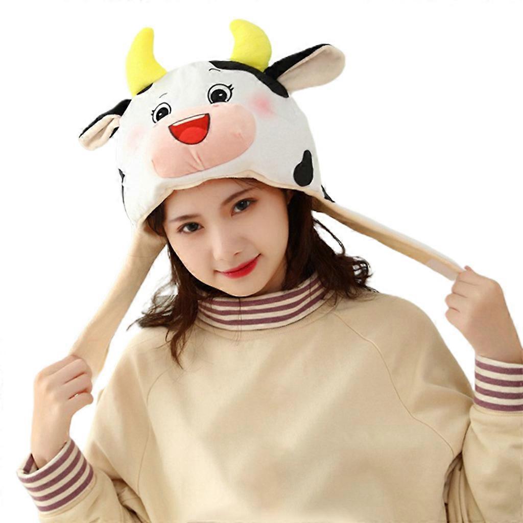 Women Kids Cute Cartoon Milk Cow Plush Hat Funny Animal Stuffed Toys Warm Earflap Cap Cosplay Holiday Party Photo Props