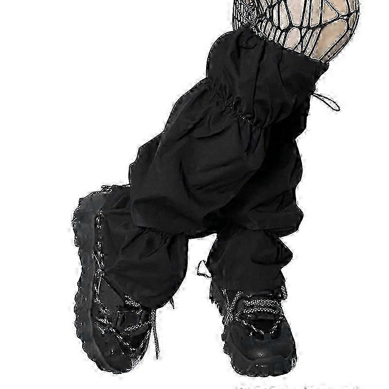 Japanese Women Girls Calf-length Socks Gothic Punk Ruched Drawstring Black Leg Warmers Harajuku Street Layering Foot Cover Sleeves