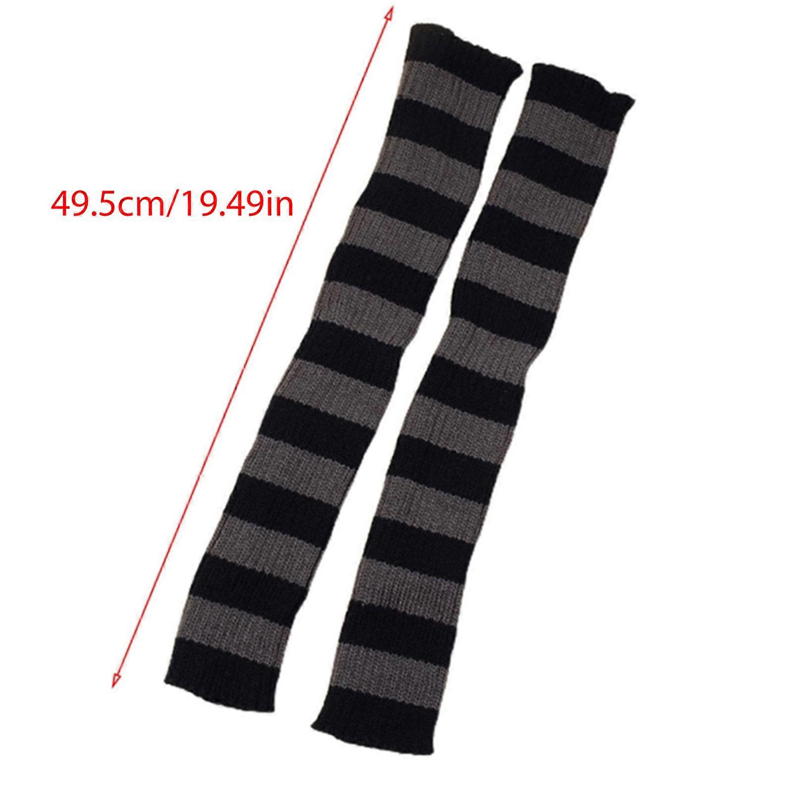 Japanese Women Colorful Striped Leg Warmers Gothic Punk Ribbed Knit Knee High Long Socks Lolita Student Slim Stockings Black and white stripes
