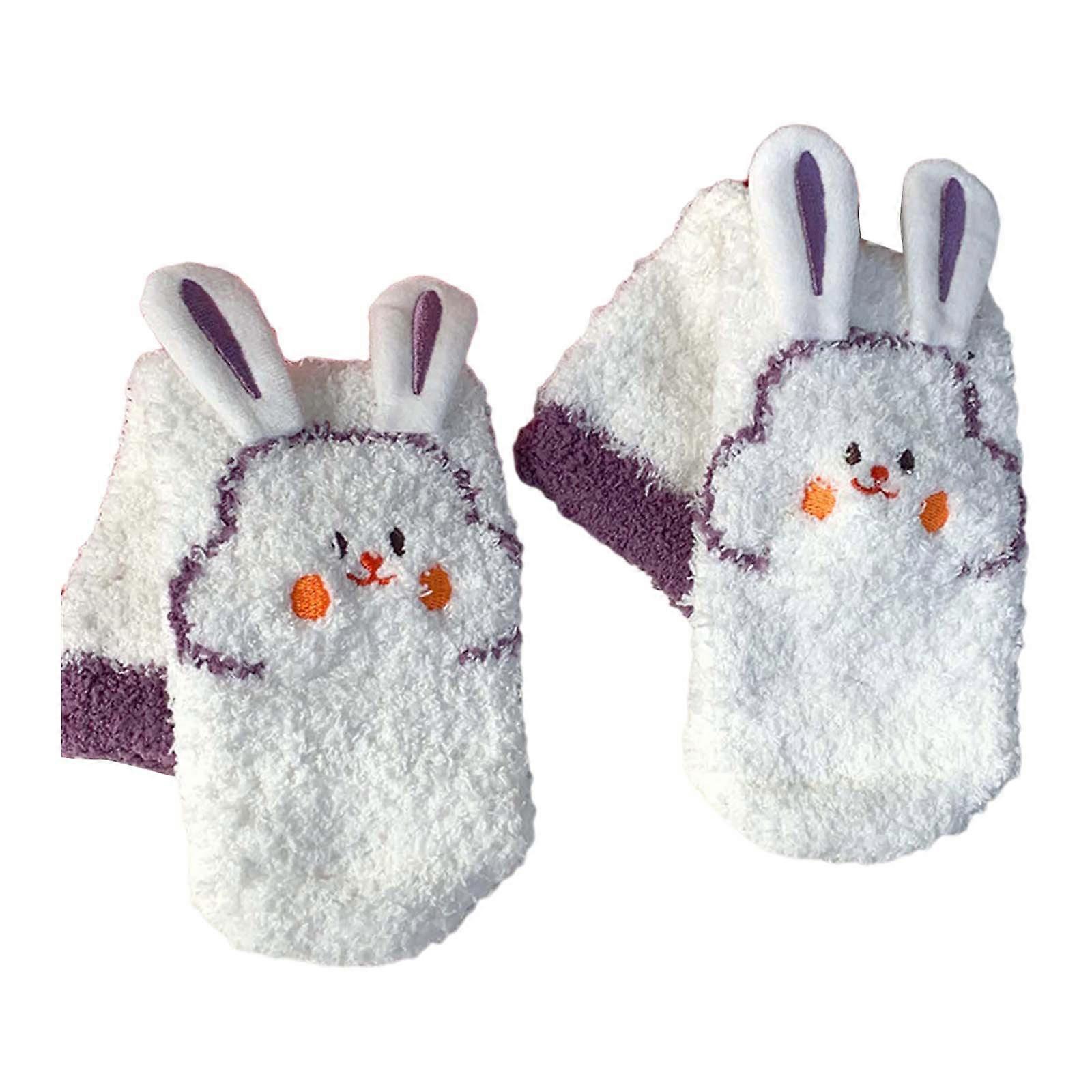 Women Japanese Y2K Cute Long Rabbit Ears Fuzzy Plush Socks Winter Warm Thicken Furry Sleep Socks Thermal Slipper Socks Purple One Size