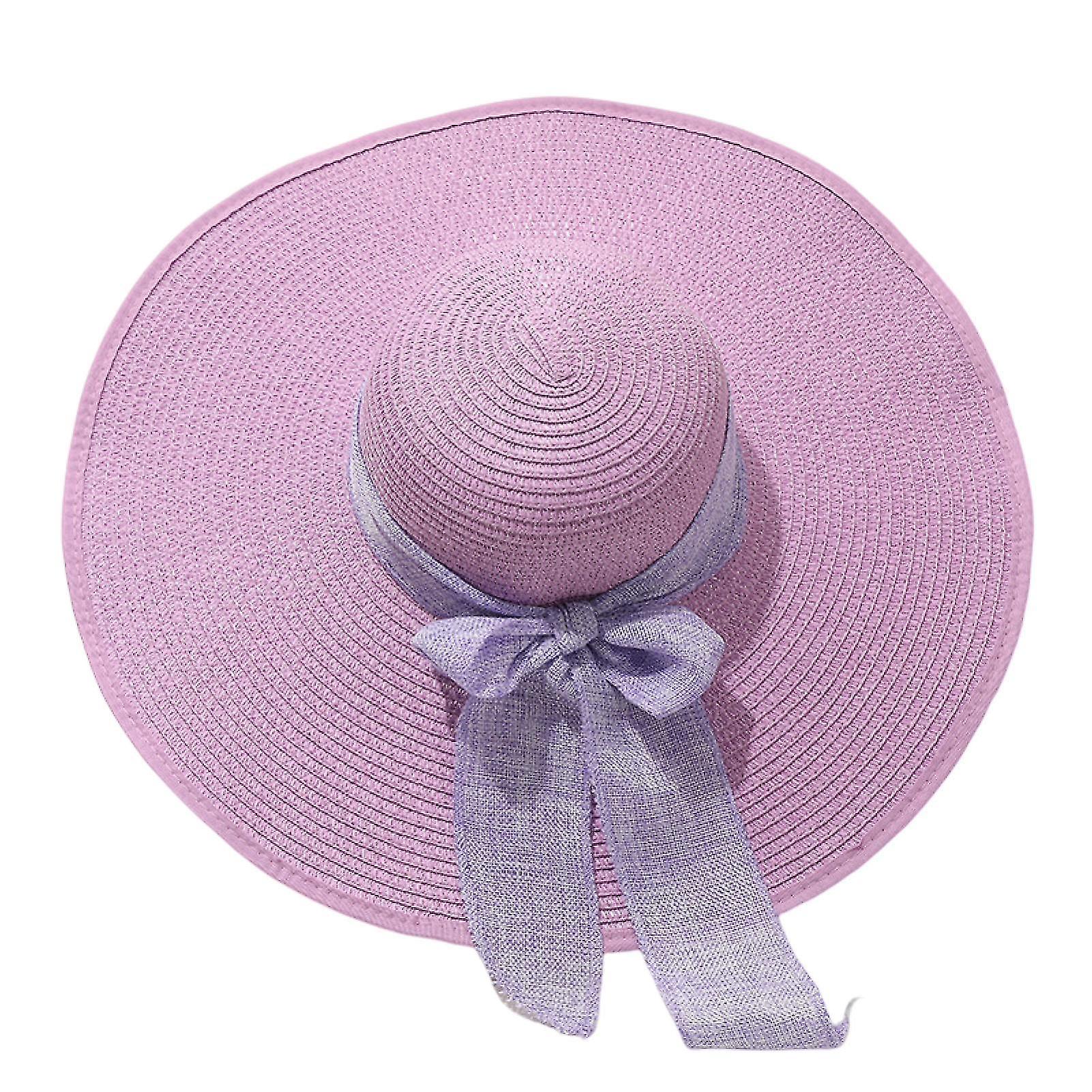 Women Fisherman Hat Bow-knot Decor Solid Color Wide Brim Round Decorative Sunscreen Foldable Strap Women Straw Hat Headwear