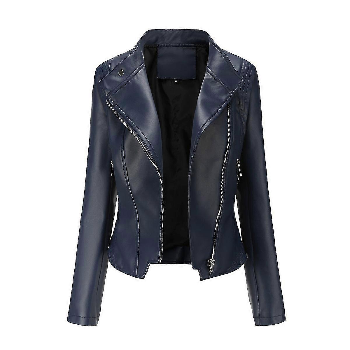 Womens All-match Biker Zipper Slim Fit Short Leather Jacket