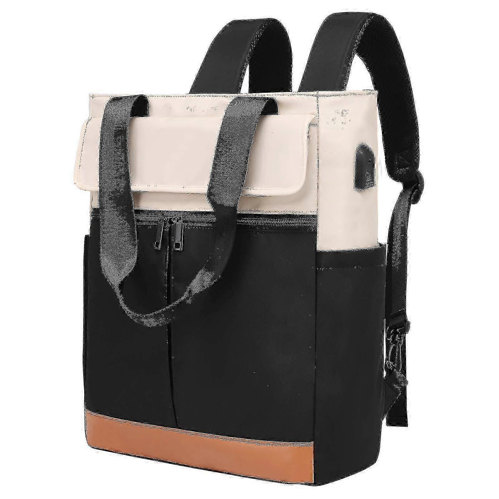 Ladies Convertible Tote Backpack Laptop Backpack Wide Top Open University School Travel Leisure Bag Black