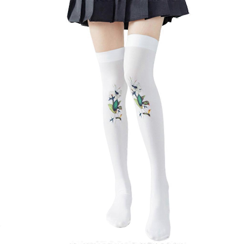 Women Lolita Student Over Knee Long Socks Harajuku Gothic Punk Hot Stamping Rose for Cross Pattern Anime Thigh High Stoc 8