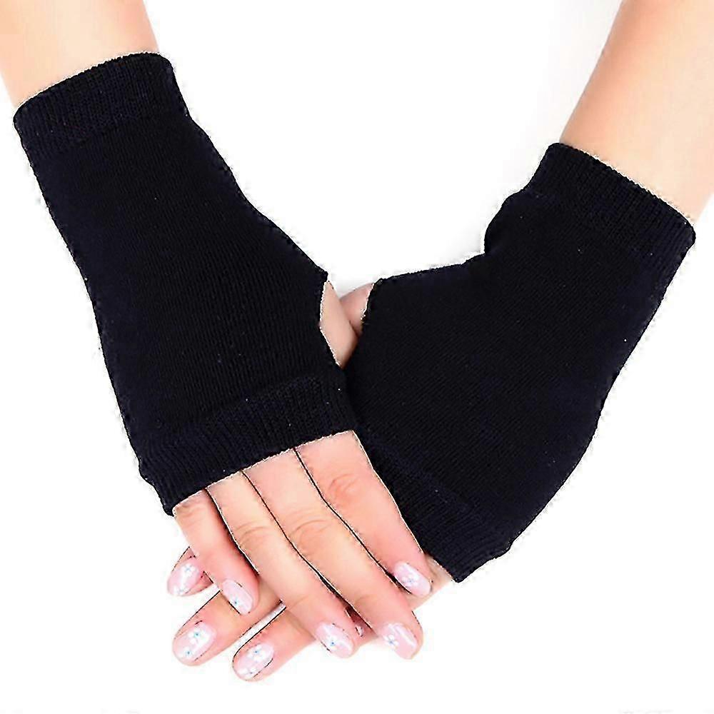 Womens Fingerless Wristed Hands Warmer Gloves Softy Stretch Knitted Solid Mittens