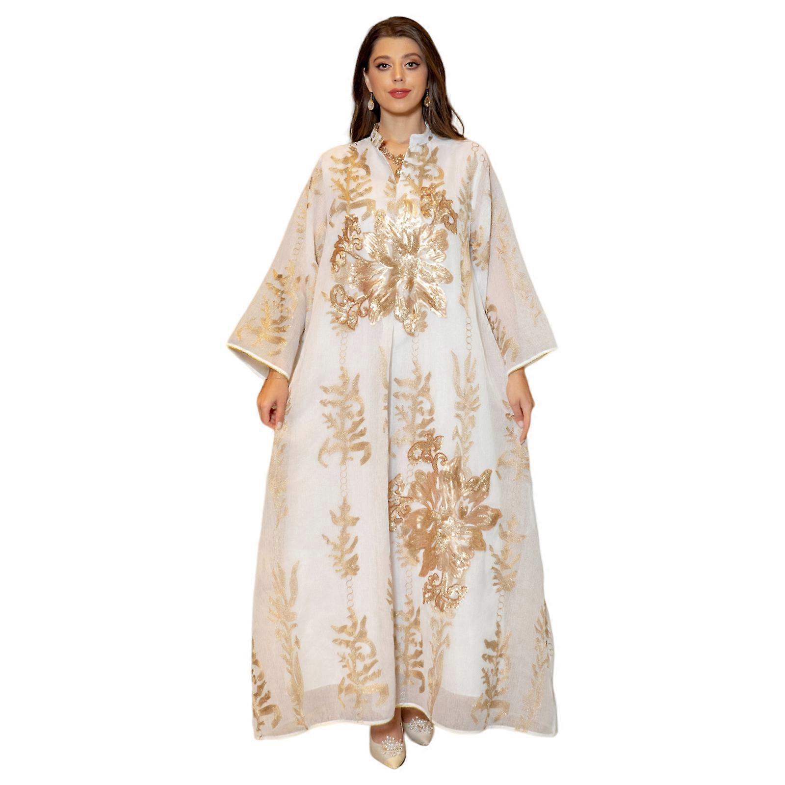 Women Muslims Dress Middle East Dress Full Length Dress Middle East Robe Long Sleeves Embroidered Robe Dress White XL