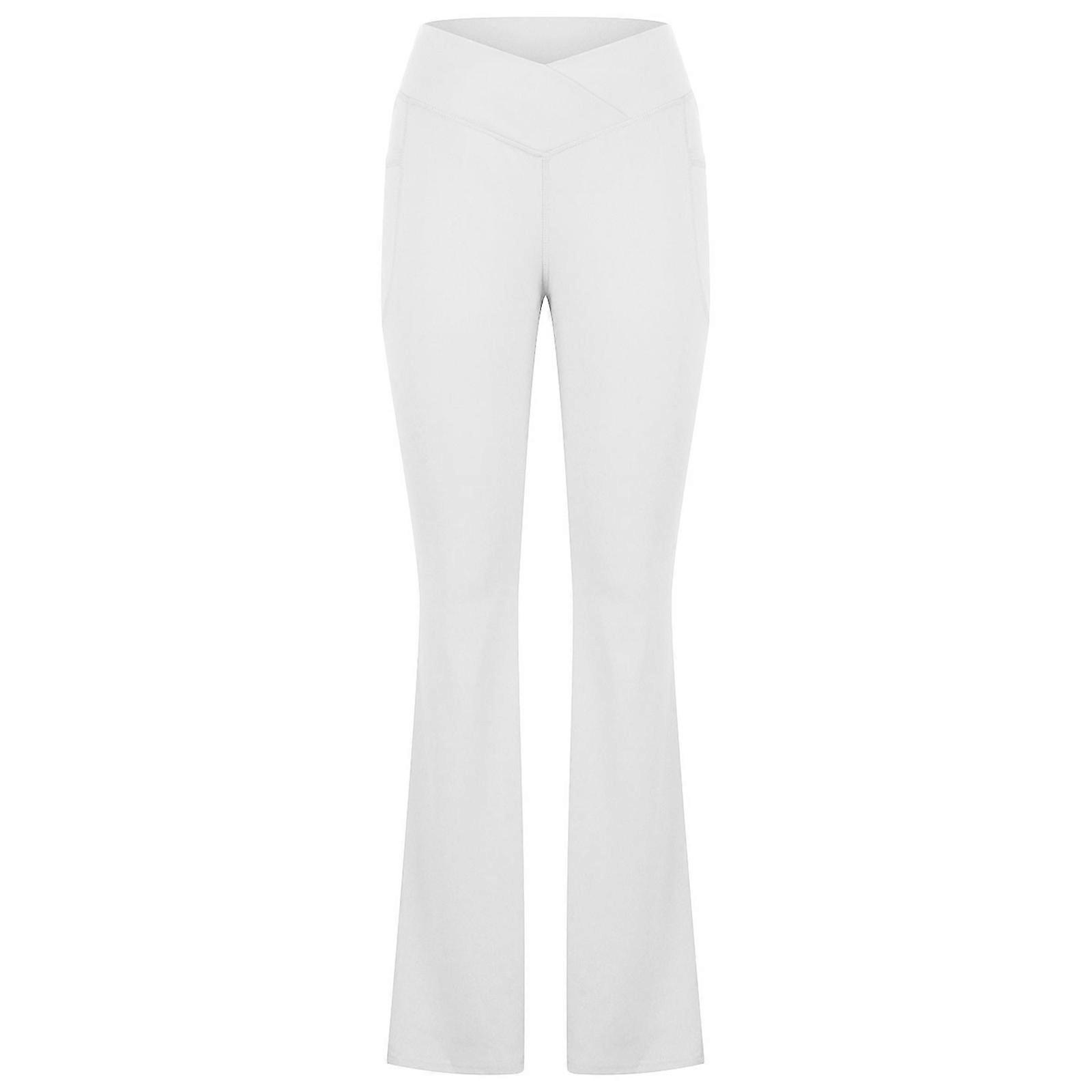 Women Solid Stretchy Long Pant Empire Waisted Bodycon Wide-leg Pant Yoga Workout Soft Long Trousers for Daily Summer White XL