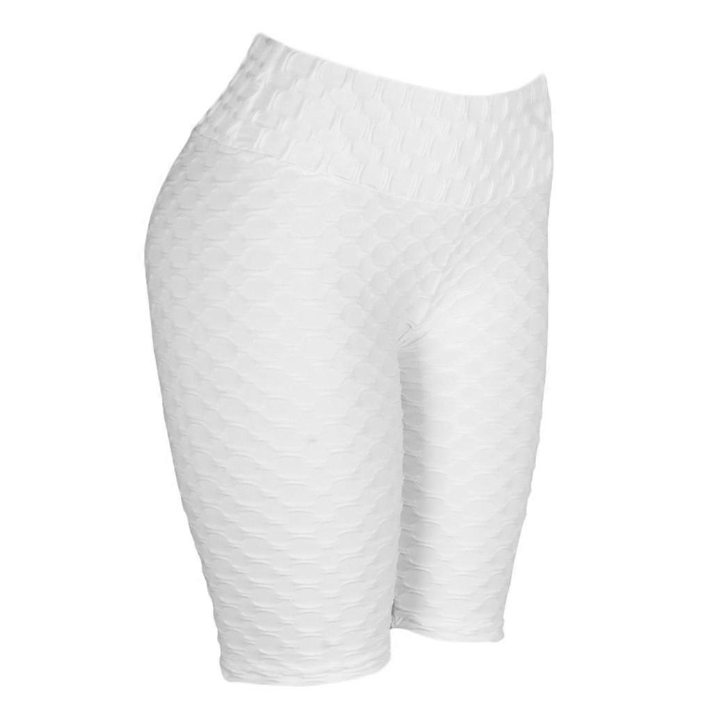 Women High Waisted Tummy Control Biker Shorts Textured Ruched Butt Lifting Skinny Yoga Pants Sports Gym Fitness Workout Running Leggings White L