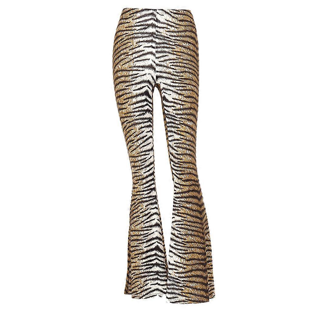 Women High Waist Wide Leg Long Pants Vintage Leopard Tiger Stripes Print Flared Bell Bottom Stretch Bodycon Trousers