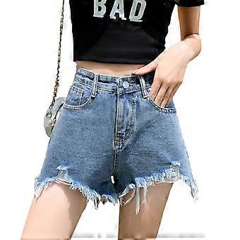 Women High Waist Wide Leg Ripped Denim Shorts Irregular Distressed for Raw Hem Jeans